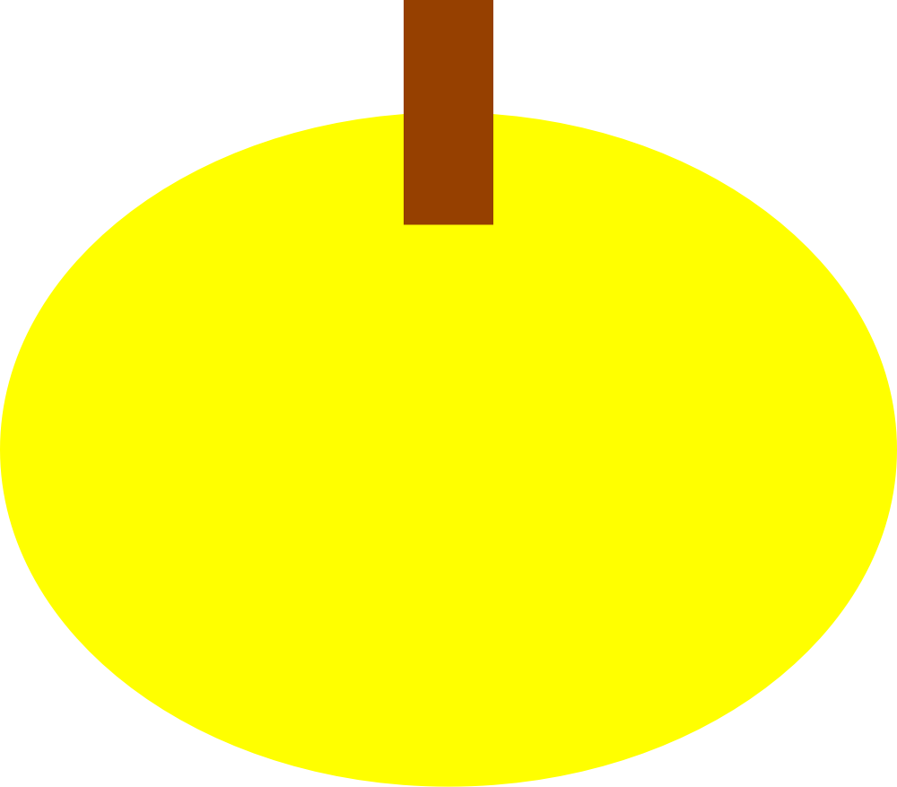 The SVG code accurately represents a lemon by depicting its key components. The lemon body is represented by an ellipse shape, capturing the rounded and oblong shape of a lemon. The yellow fill color used for the body corresponds to the characteristic color of lemons, effectively representing their vibrant and citrusy appearance. The lemon stem is represented by a rectangular shape, resembling the stem of a lemon that extends from the top of the lemon body. The saddle brown fill color for the stem accurately represents the color typically associated with lemon stems, enhancing the overall depiction of a lemon. Together, these components successfully convey the visual representation of a lemon, allowing viewers to easily recognize and identify the subject as a lemon.