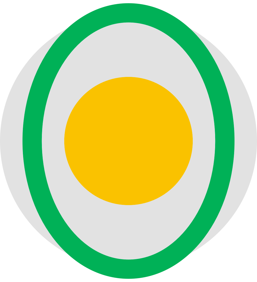 The SVG code encapsulates the visual essence of a sushi piece by means of geometric shapes and colors. The large white circle forms the body of the sushi, a clear reference to the rice that makes up the bulk of many types of sushi. Inside this white circle, a smaller yellow one is found, which stands for the topping - this could be a piece of fish or some other form of seafood, often served raw in traditional sushi. Surrounding the sushi body is an elliptical green ring, signifying the wrapping which often consists of a strip of seaweed, known as "nori". Together, these elements combine to create a stylized yet recognizable representation of a sushi piece.
